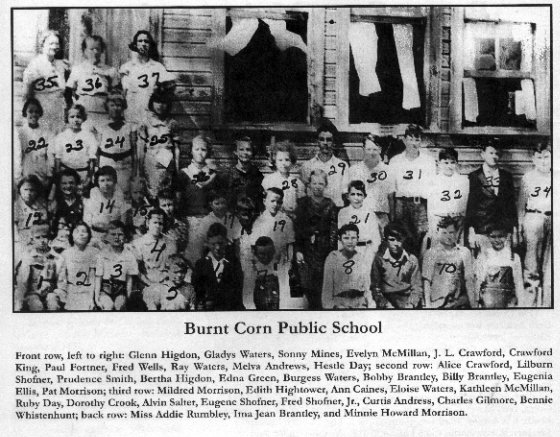 The children in this photo starting with the front row, left to right: Glenn Higdon, Gladys Waters, Sonny Mines, Evelyn McMillan, J.L. Crawford, Crawford King, Paul Fortner, Fred Wells, Ray Waters,